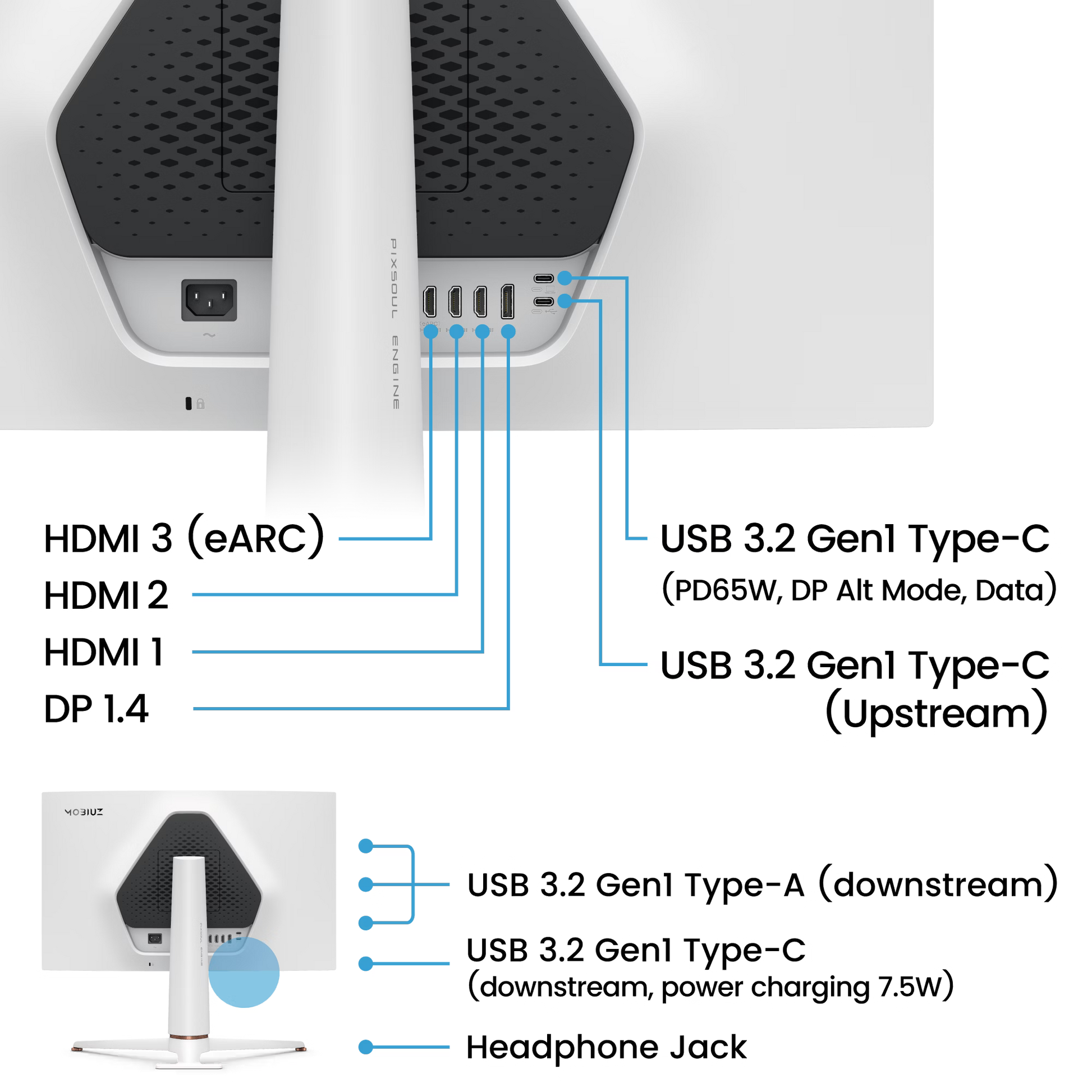 - Seamless connectivity with DP 1.4, HDMI 2.1, and USB-C (65W PD) to link your battle stations