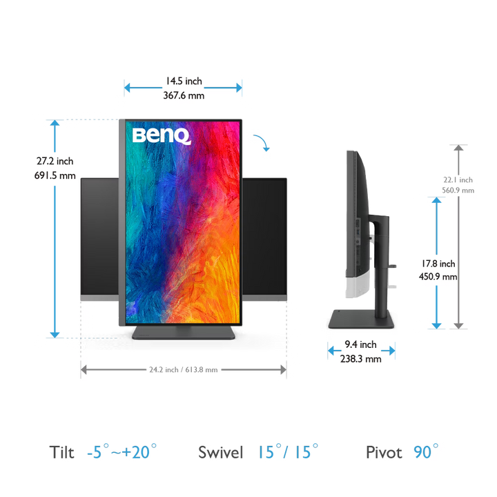 27” 4K UHD 16:9 IPS LED monitor with 90W USB-C connectivity, Covers 95% P3 & 100% sRGB, and offer Delta E ≤ 3 color consistency KVM & BenQ ICCsync boost work...