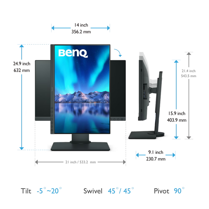 24.1" 1920x1200 WUXGA 16:10 IPS Monitor for photo editing 99% Adobe RGB, 100% sRGB, 95% DCI-P3 color coverage with factory-calibration report Make your experience better with BenQ Shading Hood SH240 for...